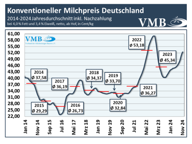 Ende 2022 zum Beispiel, als der internationale Handel in Folge der Corona-Pandemie teils zum Erliegen kam, profitierten die deutschen Milcherzeuger von außerordentlich hohen Preisen, weil die Milch auf dem Weltmarkt sehr knapp wurde. In dieser Zeit hat insbesondere China große Mengen an Milch und Milchprodukten aus Deutschland abgenommen. Inzwischen kann dorthin jedoch kaum noch etwas abgesetzt werden, da China die Eigenproduktion ausgebaut hat und dort mittlerweile wieder ein großes Angebot an Milchprodukten besteht.
